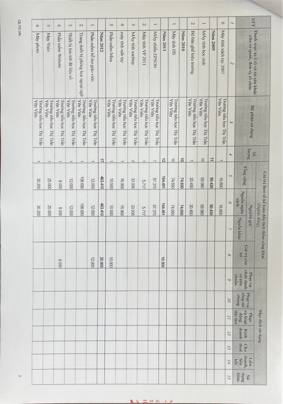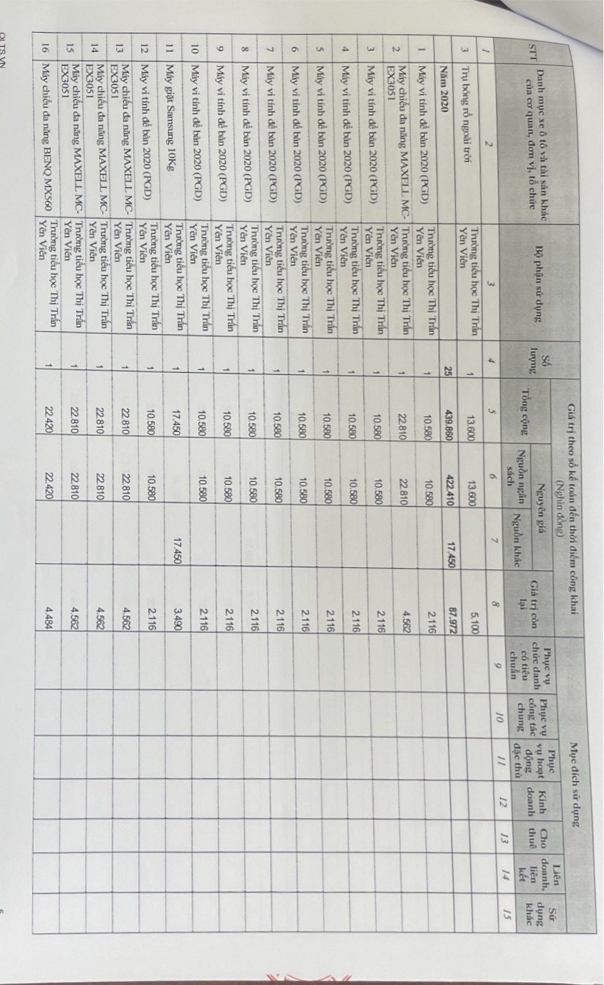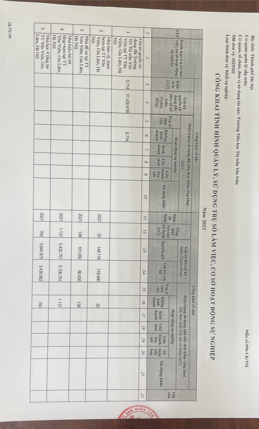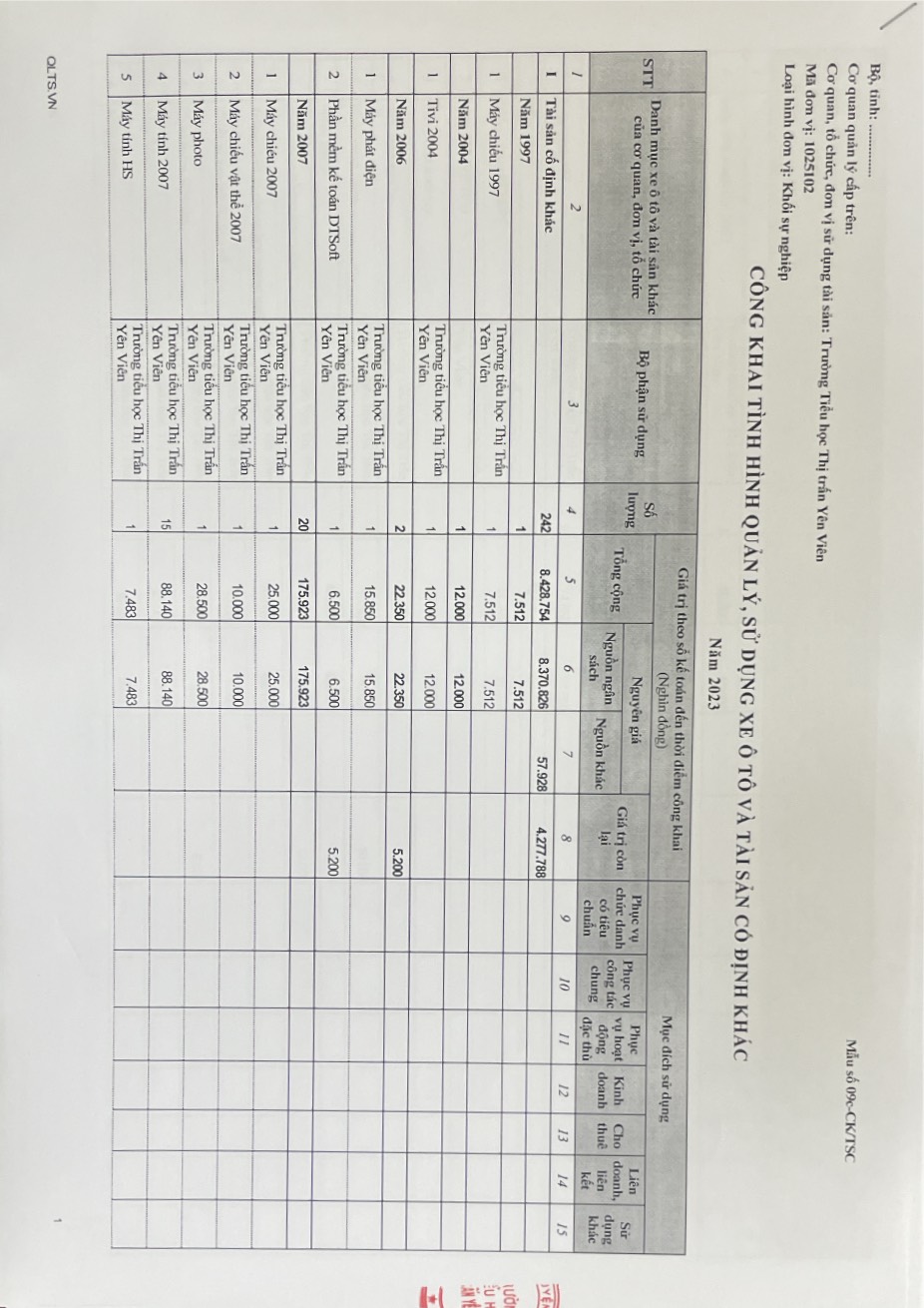 Công khai việc quản lý, sử dụng trụ sở làm việc, phương tiện đi lại và tài sản khác....năm 2023