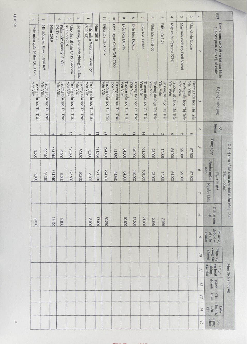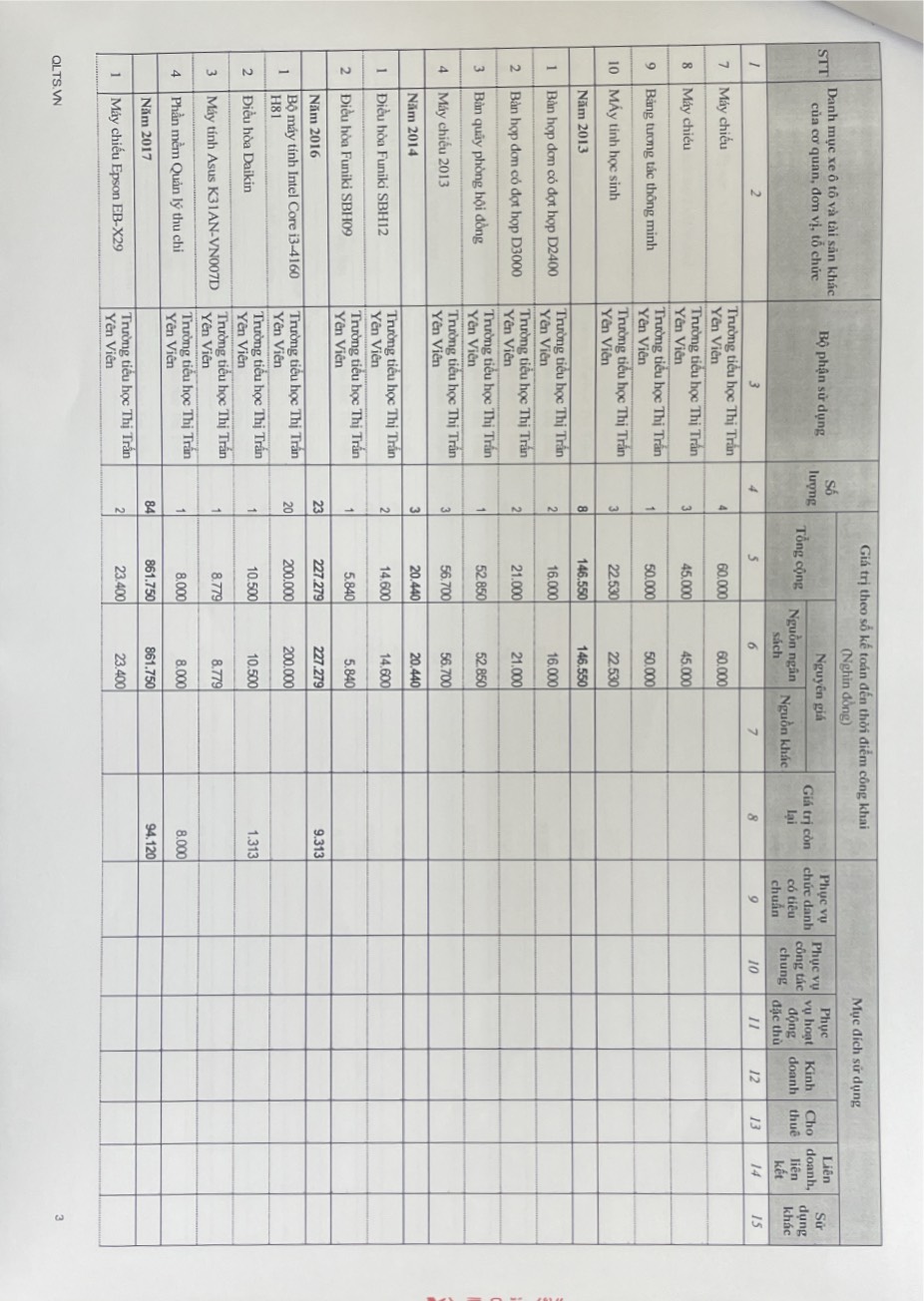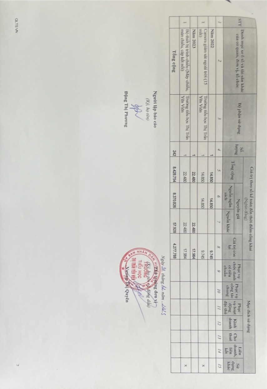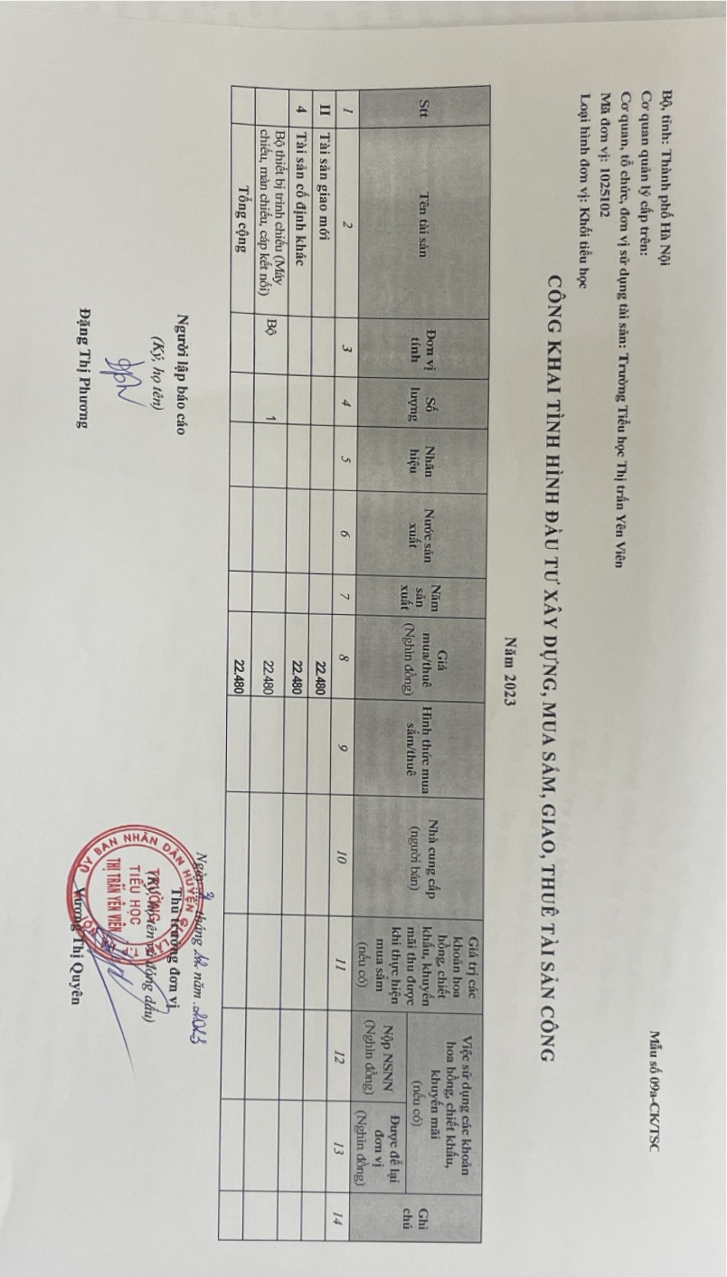 Công khai việc quản lý, sử dụng trụ sở làm việc, phương tiện đi lại và tài sản khác....năm 2023