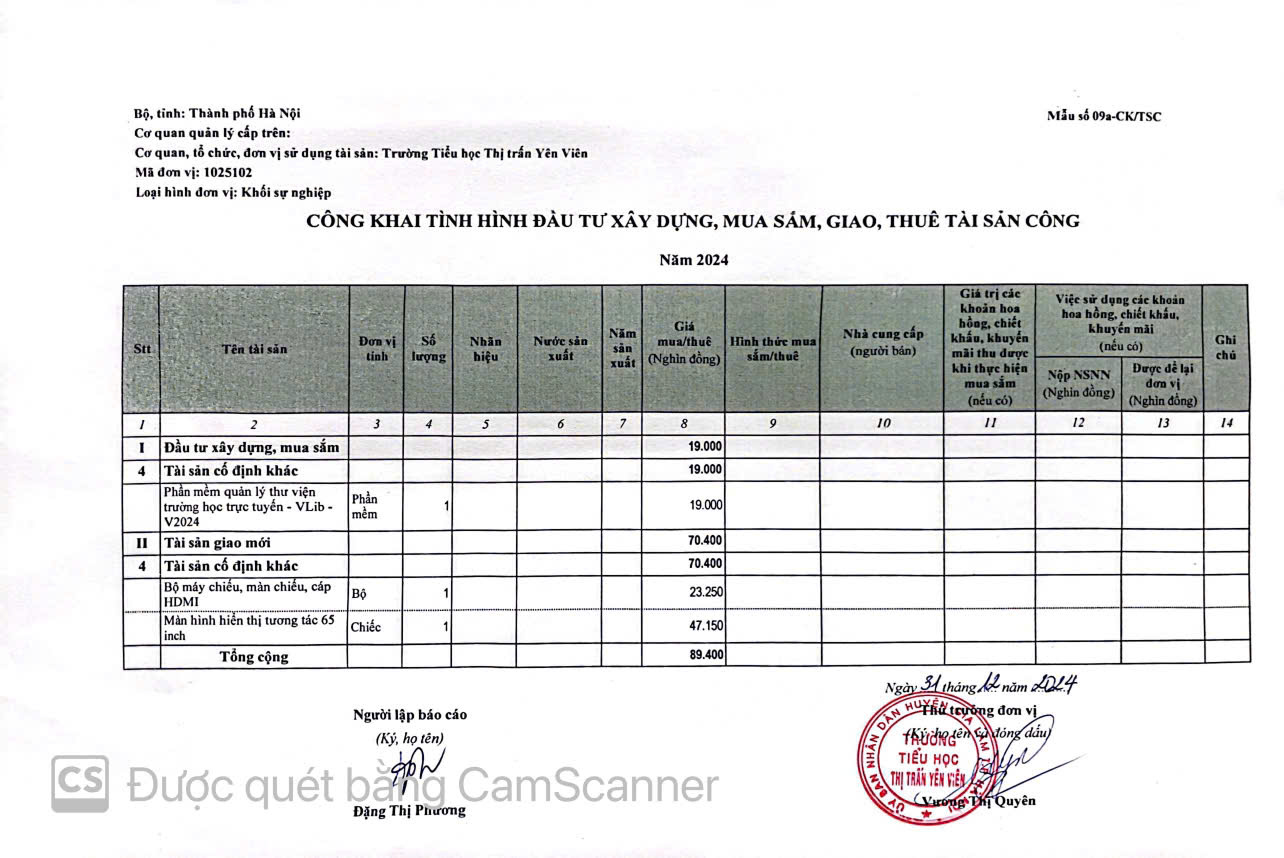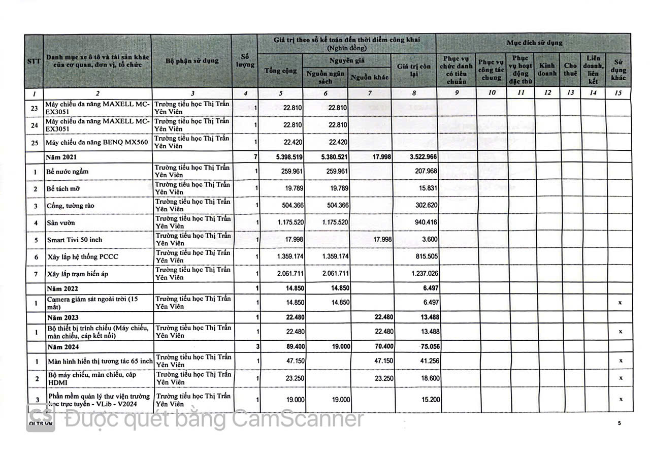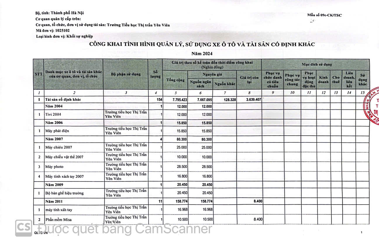 Công khai việc quản lý,sử dụng trụ sở làm việc, phương tiện đi lại và tài sản khác, cho việc cho thuê tài sản và công khai tình hình xử lý tài sản nhà nước năm 2024